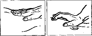 Техника этого приема на точку или болезненную зону заключается в коротком сильном давлении с вибрацией (160-200 колебаний в мин.), что соответствует седативному воздействию. В зависимости от места расположения точки или болезненного участка ритмические вибрирующие движения с давлением на точку производят одним или несколькими пальцами, или ладонью (Рис. 30).