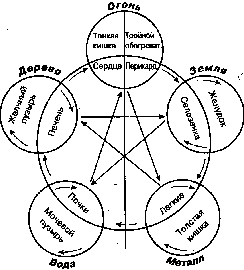 Рис. 32. Взаимосвязи органов по циклу У-Син.