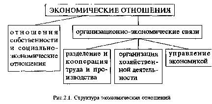 Материалы всего исторического наследия экономистов позволяют произвести классификацию экономических отношений. Прежде всего выделяются два типа хозяйственных связей: отношения собственности и соответствующие им социально-экономические связи между людьми и организационно-экономические отношения,