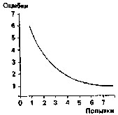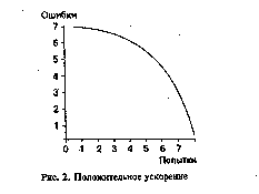 1) кривые с отрицательным ускорением (рис. 1), когда формирование навыка сначала идет быстро, а потом все более замедляется, приближаясь к некоторому предельному уровню скорости и количества ошибок. Эти кривые имеют место чаще всего при разучивании сложных видов движения. На каком-то этапе возникает то, что психологи называют "плато успеха". Выйдя в освоении навыка на какой-то определенный уровень, музыкант, спортсмен даже после большого количества повторений движения никак не может его усовершенствовать. Аналогичная