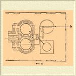 Цилиндрическая реторта из котельного железа имеет 5½ арш. высоты, 3 арш. 5 врш. в диаметре, вмещает 1¼ куб. саж. осмола. Оба дна конические, и каждое снабжено отводной трубкой; верхняя трубка служит для отвода летучих паров, нижняя — для дегтя. Верхняя трубка входит в горизонтально расположенную широкую трубу, в которой осаждаются труднолетучие вещества, стекающие по вертикальной трубке в стакан с носом и по наполнении последнего в приемный чан; вертикальная трубка должна быть погружена в жидкость в стакане, чтобы образовать гидравлический запор. С нижней частью этой же вертикальной трубки соединена нижняя отводная труба из реторты, служащая для стока дегтя. Летучие пары, не сгустившиеся в верхнем горизонтальном приемнике, поступают в холодильник, где и сгущаются. Реторта снабжена двумя лазами, верхним и нижним, для нагрузки и разгрузки. На рисунке представлено такое устройство печи, при котором топка помещается не в главной кладке, а сбоку; такое расположение представляет то удобство, что при ремонте топки (который приходится производить чаще всего) не требуется разбирать кладку самой печи. Огонь из топки поступает через соединительный боров прямо в спиральный дымовой ход около боковых стенок реторты и, дойдя доверху, уходит в дымовую трубу. На некоторых заводах, как представлено на рисунке, боковые стенки обкладывают кирпичом (в ¼ кирпича) в видах более продолжительного сохранения реторты, но едва ли это можно признать рациональным, так как при такой обкладке реторта уже слишком медленно прогревается. Реторты того же типа для перегонки лиственных пород отличаются от предыдущей тем, что имеют только одну отводную трубу вверху, и при вмазке в печи огонь пускают с начала по дымоходам под дном реторты, а затем уже он переходит в спиральный ход около боковых стенок реторты.
