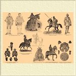 Доспехи XVI столетия для боя на копьях (joutes) обыкновенно отличались роскошью. На рис. 8 изображен сам император Максимилиан в таком Д. Деревянный чехол, или боевой плащ, входящий в состав этого вооружения, есть видоизмененный щит (тарч), который в предыдущие эпохи носился на плече или вешался на шею.