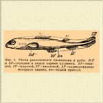 Фиг. 1. Схема расположения плавников у рыб: ВrТ и BF — передние и задние парные плавники, RF — спинной, FF — жировой, SF — хвостовой, AF — заднепроходные непарные плавни, Аn — задний проход.