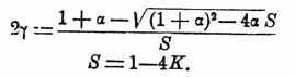 [(1 — γ)(α — γ)]/[4 γ 2] = K,