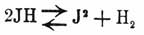 Обозначим через 1 начальное количество водорода (в молекулах), через α начальное количество йода; вследствие реакции образуется 2 γ молекул йодистого водорода. Следовательно, когда наступит равновесие, система будет заключать 2 γ молекул HJ, 1 — γ молекул водорода и α — γ молекул йода. Подставляя эти величины в наше уравнение, получим: