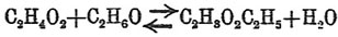 Это превращение сопровождается крайне незначительным тепловым эффектом, и в связи с этим оказывается, что температура почти не влияет на него: при 10°С предел реакции наступает, когда превращению подвергнутся 65,2% смеси кислоты и спирта, а при 220° этот предел = 66,5%.