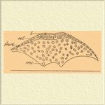 Но на зародышах, которые развивались в некоторых растворах и у которых эктодерма придавлена разросшейся мезодермой к оболочке, развитие раковинной железы происходит совершенно своеобразно. Клетки ее делаются цилиндрическими и обособляются по форме от соседних (фиг. 5), а затем по краям этого зачатка появляются вследствие размножения клеток эктодермы округлые клетки, которые выползают на поверхность зачатка, а затем принимают форму плоских кроющих клеток (фиг. 6) и наконец разрушаются.