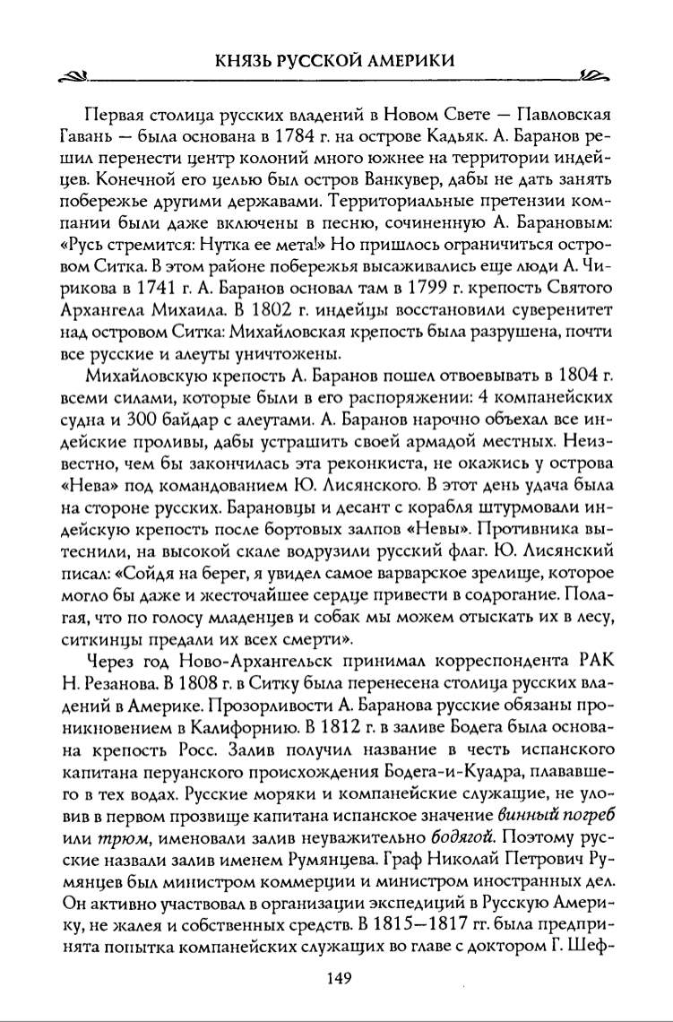 рикова в 1741 г. А. Баранов основал там в 1799 г. крепость Святого