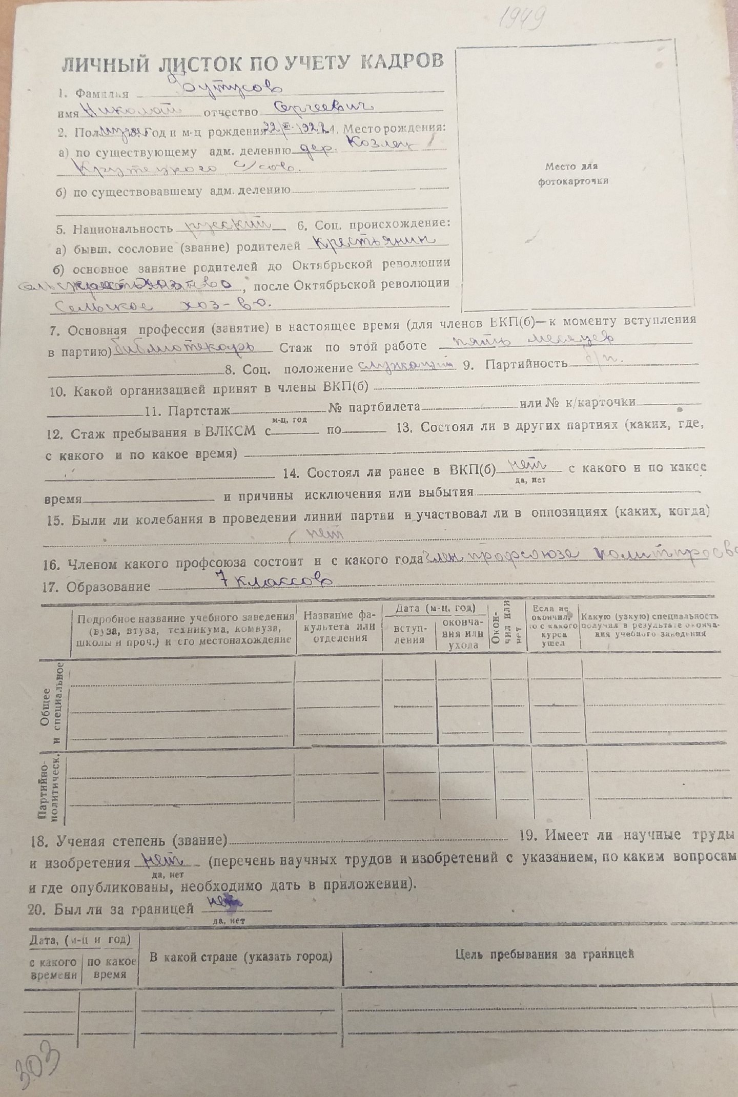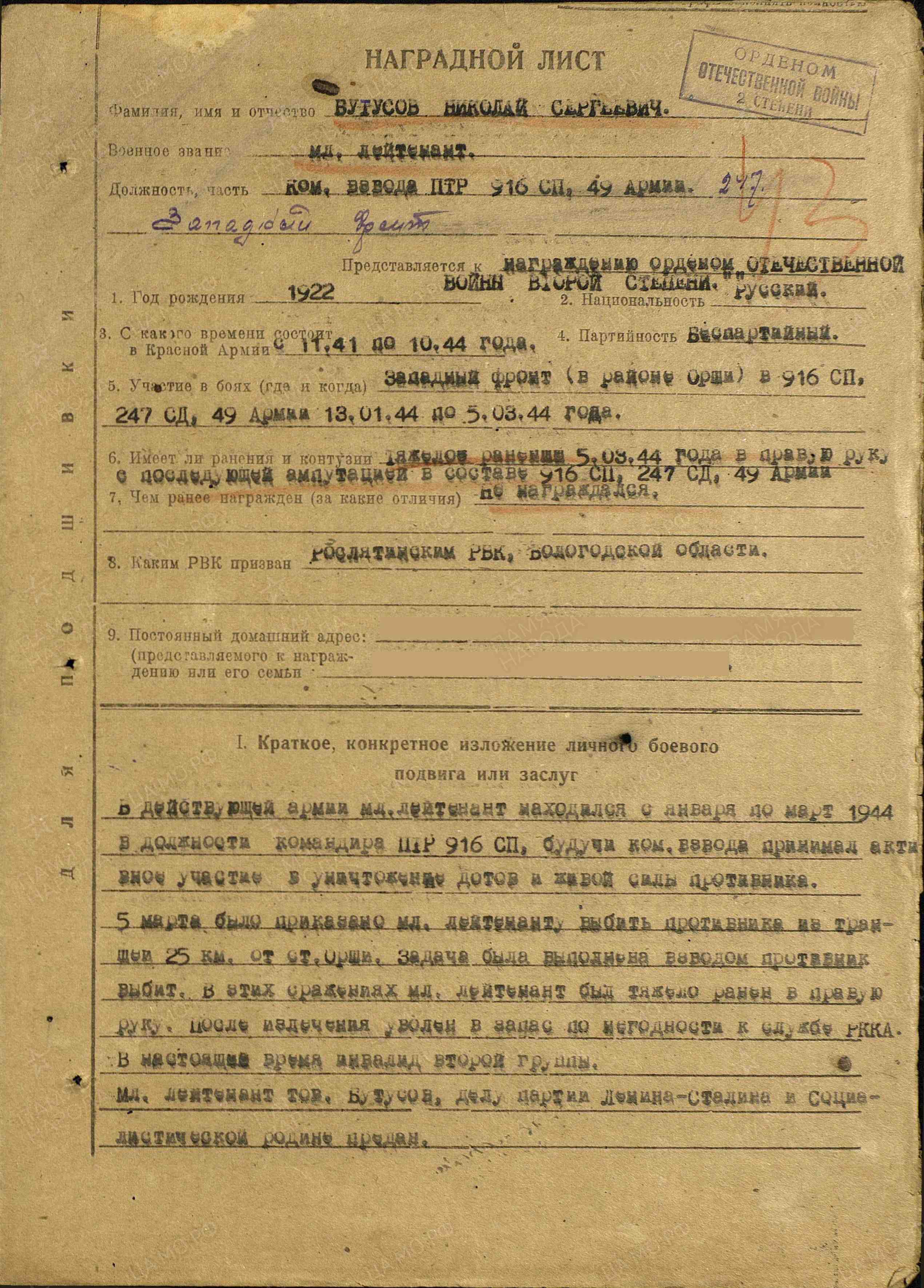 Бутусов Николай Сергеевич на сайте «Память народа»
