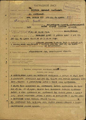 Бутусов Николай Сергеевич на сайте «Подвиг народа»
