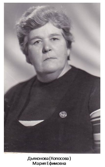 Мария Ефимовна Дьяконова родилась 10 августа 1925 г. в деревне Студеное Стреленского сельсовета Великоустюгского района в крестьянской семье. Окончила 7 классов Стреленской средней школы.