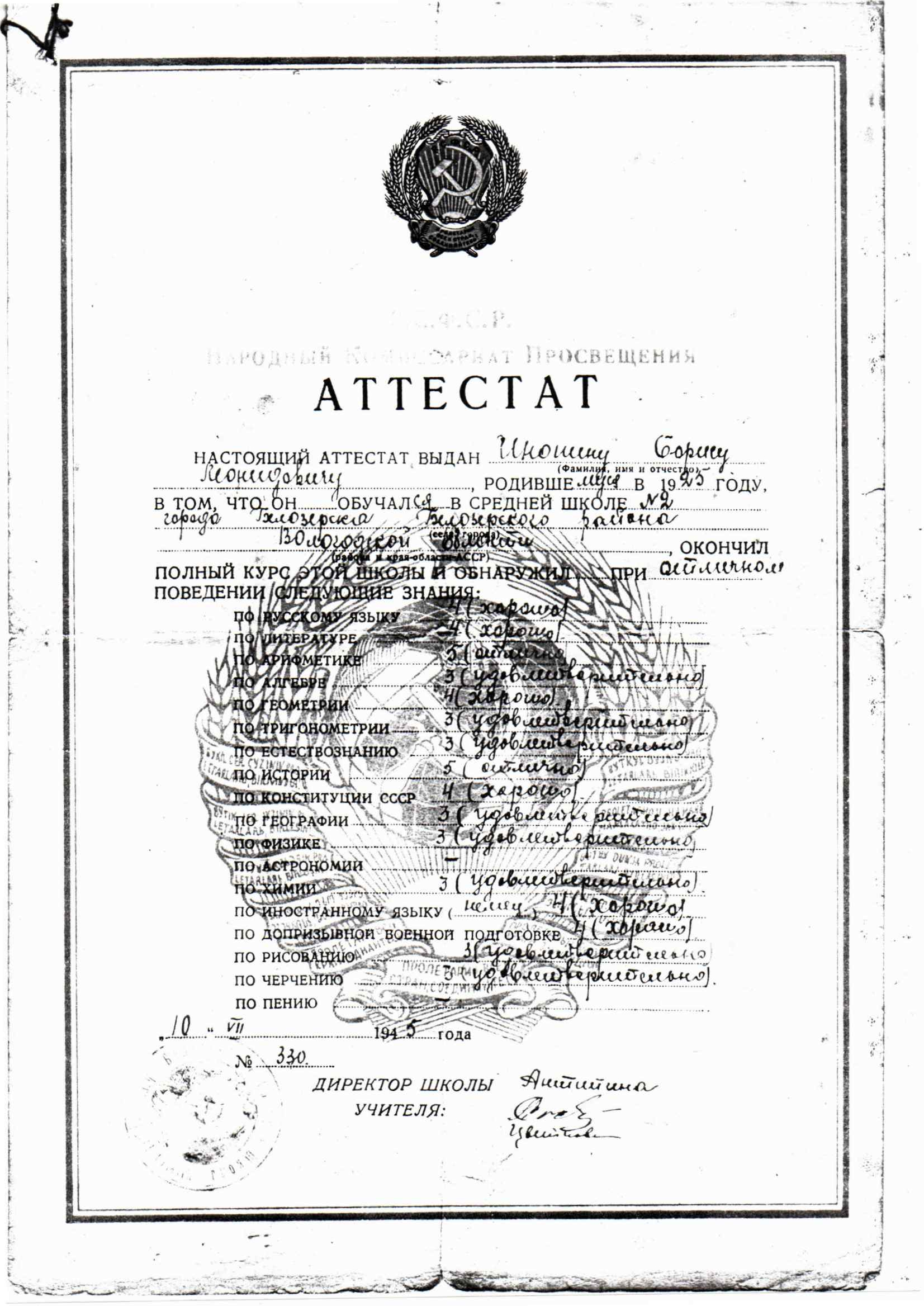 Воспоминания сына Евгения Инопина
