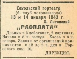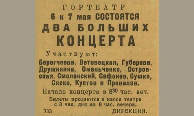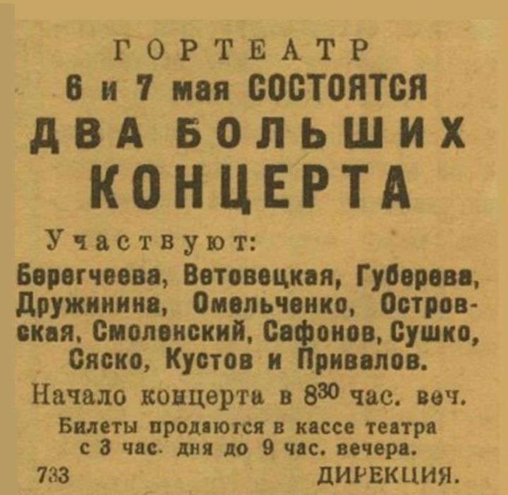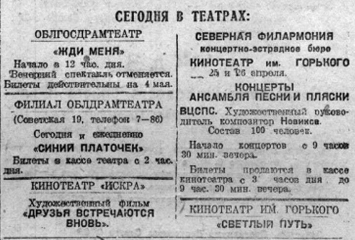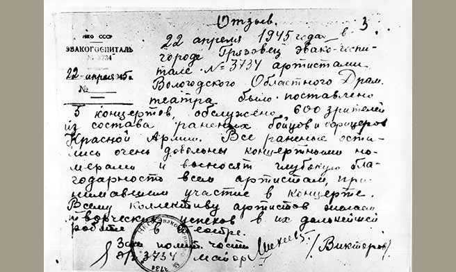Отзыв воинов о концерте артистов Вологодского облдрамтеатра. 1945 г.