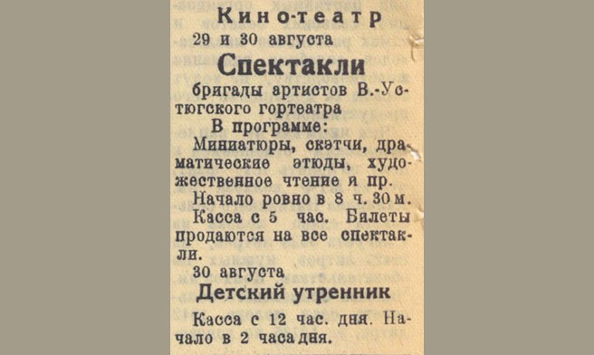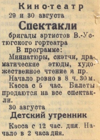 Сводка о работе театров Вологодской области. 1941 г.