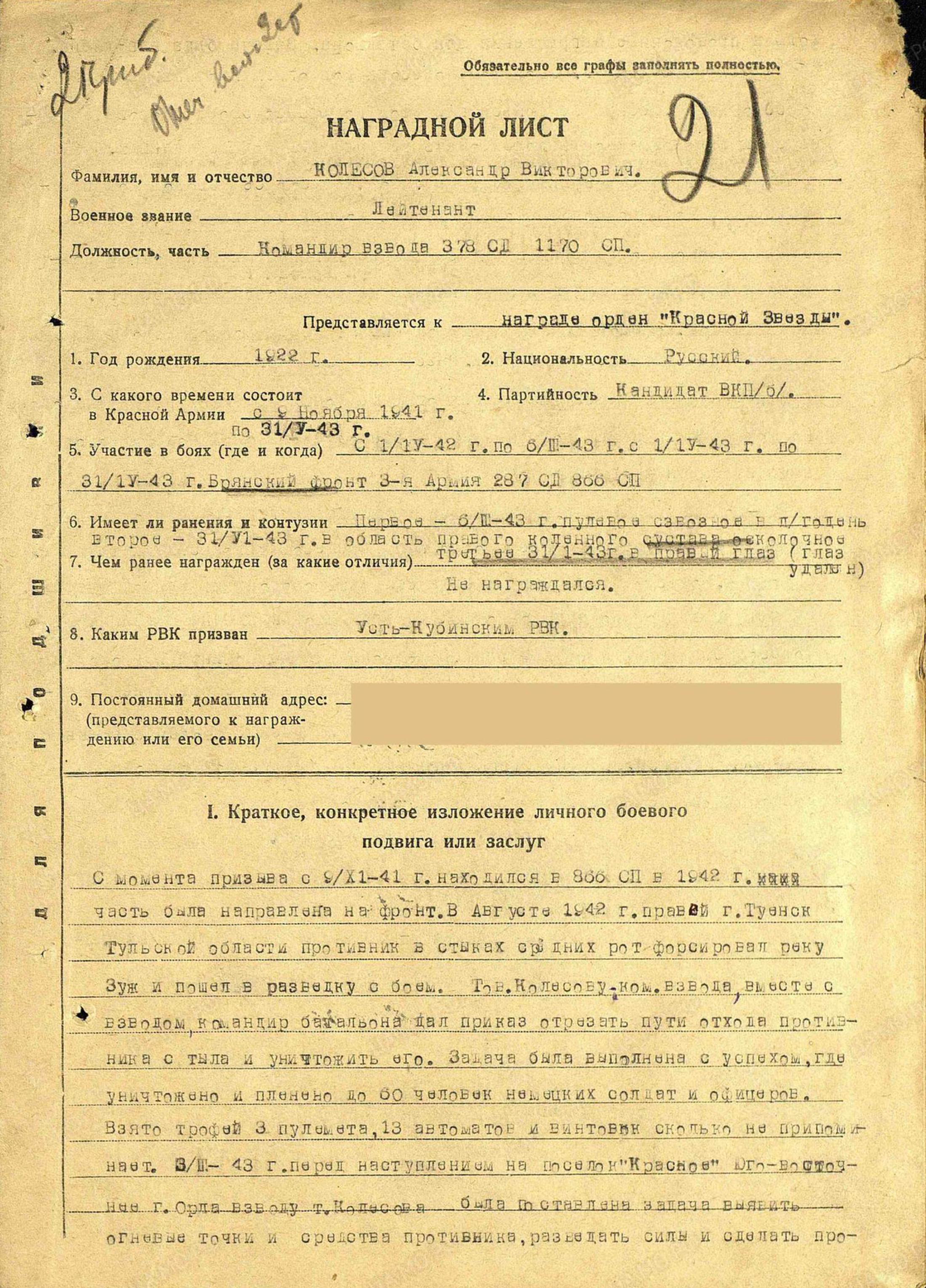 Колесов Александр Викторович на сайте «Память народа»