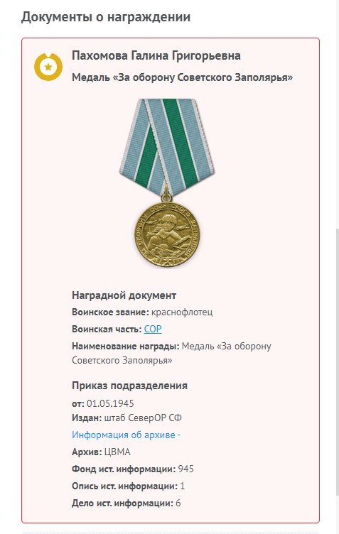 Пахомова Галина Григорьевна на сайте «Память народа»