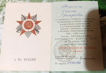 Мелехина Галина Григорьевна : наградные документы // Домашний архив документов / [предоставила] Л. В. Волова, дочь.