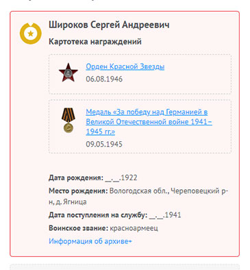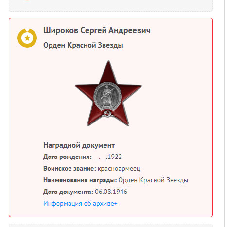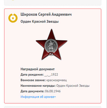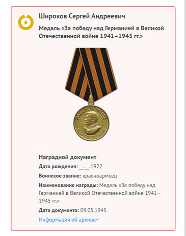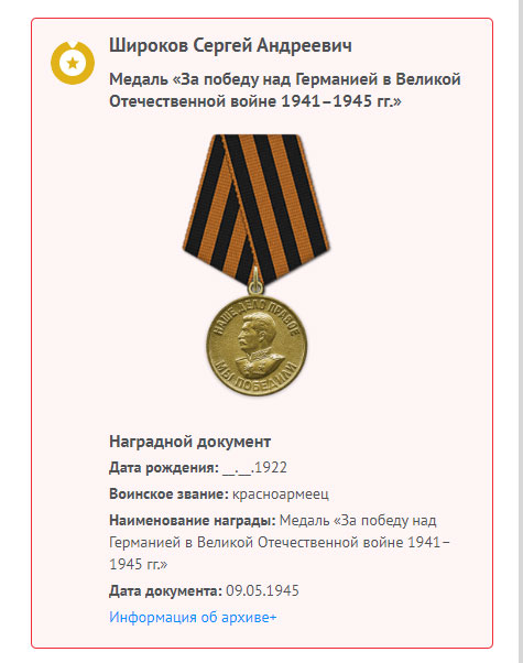 Широков Сергей Андреевич на сайте «Память народа»