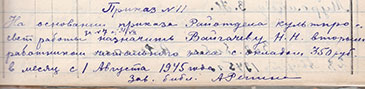 В 1945 г., по состоянию здоровья матери, переведена в Великоустюгскую районную библиотеку, где трудилась до 1947 г. в читальном зале. С 1947 г. и до выхода на пенсию в 1981 г. Нина Николаевна работала в районной детской библиотеке заведующим абонементом.