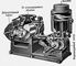 Двухроторные насосы имеют 2 фигурных ротора, которые при вращении входят один в другой, создавая направленное движение газа. Эти насосы обладают большой быстротой откачки и часто применяются как промежуточные (вспомогательные, или бустерные) между форвакуумными и высоковакуумными. Они обеспечивают вакуум 10-2—10-3 н/м2 (10-4—10-5 мм рт. ст.) при быстроте откачки до 15 м3/сек (рис. 4а, 4б).
