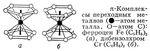 — атом С): ферроцен Fe(C5H5)2 (а), дибензолхром Cr(C6H6)2 (б).