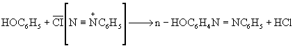 Азосочетание, образование азокрасителей из диазосоединений и главным образом ароматических аминов или фенолов, например: