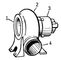 Рис. 1. Центробежный вентилятор:1 — входное отверстие; 2 — спиральный кожух; 3 — двигатель; 4 — выпускное отверстие.