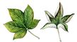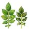 Морщинистая мозаика картофеля: слева — здоровый лист, справа — больной лист.