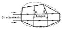 По техническим условиям давление воды в В. с. населённых мест не должно превышать 6 ат. Для подачи воды в отдельные многоэтажные здания устраивают местные насосные станции подкачки. В. с. должны обеспечивать надёжное и бесперебойное снабжение водой потребителей. Этому условию отвечает устройство кольцевых В. с., состоящих из смежных замкнутых контуров-колец (рис. 1), расположение которых зависит от планировки города. При аварии поврежденный участок водовода может быть выключен (задвижками а и б) без прекращения подачи воды ко всем остальным линиям В. с. В разветвлённых (тупиковых) В. с. (рис. 2) при аварии на любом участке (например, в точке x) прекращается подача воды во все участки сети, лежащие за поврежденным; поэтому разветвлённые сети могут устраиваться лишь в тех случаях, когда допустимы перерывы в снабжении водой. Все В. с., в которых предусматривается подача воды для тушения пожаров, как правило, устраивают кольцевыми. В В. с. различают магистральные линии, транспортирующие воду транзитом в удалённые районы снабжаемой территории, и распределительную сеть, подающую воду к отдельным домовым ответвлениям.