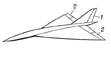 Рис. 2. Самолет типа «бесхвостка»: 1 — руль поворота; 2 — элевон.