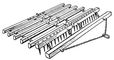 Волокуша, 1) с.-х. орудие: а) для весенней предпосевной обработки почвы; б) для подбора сена из валков и транспортировки копён сена к местам скирдования. Для обработки почвы используют: брусковую В., которая состоит из трёх деревянных брусков, скрепленных цепями; В.-гвоздёвку (рис. 1) — соединённые цепями деревянные бруски, передние из которых снабжены короткими зубьями; шлейф-В., или шлейф-борону (см. Борона). В. срезают гребни почвы и другие неровности, разрушают комья земли, выравнивают поле и создают слой рыхлой мелкокомковатой почвы, который предотвращает испарение почвенной влаги. Сено из валков подбирают навесными грабельными В. (рис. 2) грузоподъёмностью до 300 кг, состоящими из грабельной решётки, упорной стенки и механизмов подъёма и навески. Для транспортировки копён сена и соломы применяют тросовую безрамную или рамочную В. Тросы этих В. прикрепляют к двум тракторам. При работе тракторы направляют так, чтобы они двигались по сторонам ряда копён. Захватив 10—15 копён, они отвозят их к месту скирдования.