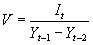 Yt = At + [ 1 - s ] Yt-1 + v[ Yt-1- Yt-2 ] ,