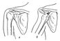 Вывих : а — нормальный плечевой сустав (правый): б — вывих правого плеча.