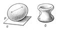 Выпуклое тело, геометрическое тело, обладающее тем свойством, что соединяющий две его любые точки отрезок содержится в нём целиком. На рис. тело а выпукло, а тело б не выпукло. Шар, куб, шаровой сегмент, полупространство — примеры В. т. Любая связная часть границы (см. Связное множество) В. т. называется выпуклой поверхностью. Через каждую точку границы В. т. проходит по крайней мере одна опорная плоскость, имеющая общую точку (или отрезок, или часть плоскости) с границей тела, но не рассекающая его (плоскость Р на рис. а). В точках, где граница В. т. — гладкая поверхность, опорная плоскость будет касательной. В тех точках, где гладкость нарушается (например, в вершине куба), можно провести бесконечно много опорных плоскостей. В. т. могут быть пяти типов: конечные (граница — замкнутая выпуклая поверхность), бесконечные (граница — одна бесконечная поверхность; например, В. т., ограниченное параболоидом), бесконечные в обе стороны цилиндры (граница — замкнутая выпуклая цилиндрическая поверхность; например бесконечный круговой цилиндр), слои между парами параллельных плоскостей, всё пространство. В. т. могут быть заданы посредством опорной функции, выражающей расстояние от начала координат до опорной плоскости как функцию от внешней нормали к В. т. (т. е. единичного вектора, перпендикулярного опорной плоскости и направленного в сторону того из двух полупространств, определяемых этой плоскостью, в которой нет точек В. т.).