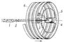 Рис. 2. Схема оптической коммутации в киносъёмочном аппарате типа ФП — 22 : 1 — вращающаяся призма Дове; 2 и 3 — оптическая система, строящая изображение на зеркале; 4 — вращающийся вал с зеркалом; 5 — объективы линзового пояса; 6 — изображение на киноплёнке.