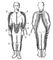 Рис. 2. Типовое расположение натяжных устройств на компенсирующем костюме (вид костюма спереди и сзади): 1 — натяжное устройство; 2 — застёжка «молния»; 3 — комбинезон; 4 — резиновый шланг натяжного устройства; 5 — штуцер натяжного устройства; 6 — штуцер противоперегрузочного костюма.