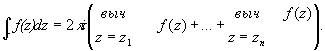 Важное значение вычетов вытекает из следующей теоремы. Пусть f (z) — однозначная аналитическая функция в области D, за исключением изолированных особых точек, Г — простая замкнутая спрямляемая кривая, принадлежащая области D вместе со своей внутренностью и не проходящая через особые точки функции f (z); если z1,..., zn — все особые точки f (z), лежащие внутри Г, то