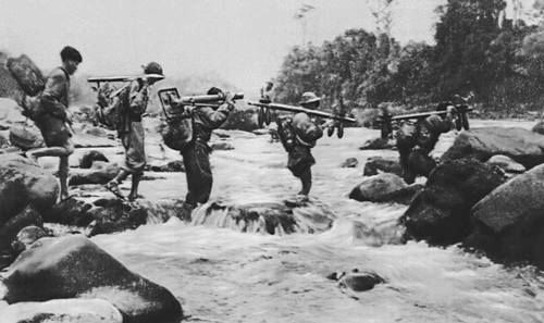 Подразделение Народных вооружённых сил освобождения Южного Вьетнама переправляется через реку.