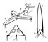Самолёт вертикального взлёта и посадки (а), кабина космического корабля (б), ракета (в): 1 — газовый руль; 2 — генератор газа.