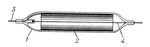 Рис. 1. Схема стеклянного счётчика Гейгера — Мюллера: 1 — герметически запаянная стеклянная трубка; 2 — катод (тонкий слой меди на трубке из нержавеющей стали); 3 — вывод катода; 4 — анод (тонкая натянутая нить).