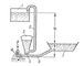 Схема гидравлического тарана: 1 — верхний бак; 2, 6 — трубопроводы; 3 — напорный колпак; 4, 5 — клапаны; 7 — резервуар; р — усилие, необходимое для открытия клапана; h — высота падения воды; Н — высота подъёма воды.