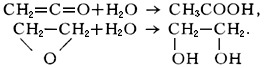 В результате Г. кетена образуется уксусная кислота, а окиси этилена — этиленгликоль: