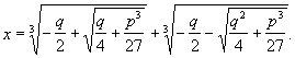 Алгебраическое решение уравнения 3-й и 4-й степеней было найдено в 16 в. Для уравнения вида x3+ px + q = 0 (к которому можно привести всякое уравнение 3-й степени) оно даётся формулой: