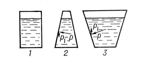 Гидростатический парадокс, заключается в том, что вес жидкости, налитой в сосуд, может отличаться от силы давления, оказываемой ею на дно сосуда. Так, в расширяющихся кверху сосудах (рис.) сила давления на дно меньше веса жидкости, а в суживающихся — больше. В цилиндрическом сосуде обе силы одинаковы.