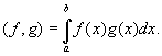 понимаемый как интеграл в смысле Лебега. При этом функции, отличающиеся друг от друга лишь на множество меры нуль, считаются тождественными. Сложение функций и умножение их на число определяется обычным способом, а под скалярным произведением понимается интеграл