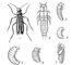 Гиперметаморфоз жука-нарывника Epicanta: 1 — взрослое насекомое; 2 — личинка первого возраста; 3—5 — личинки последующих возрастов; 6 — предкуколка; 7 — куколка.