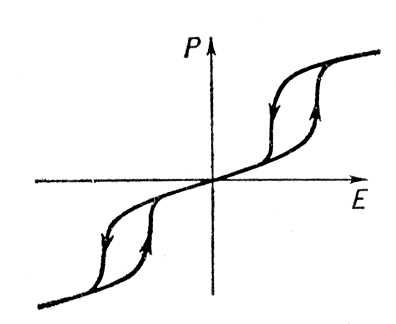 Рис. 3. Петля диэлектрического гистерезиса в сегнетоэлектрике: Р — поляризация образца; Е — напряжённость электрического поля.