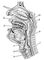 Продольный саггитальный разрез через полости носа, глотки и гортани: 1 — носовые раковины; 2 — твёрдое нёбо; 3 — мягкое нёбо; 4 — надгортанник; 5 — гортань; 6 — трахея; 7 — пищевод; 8 — глотка; 9 — носоглотка; 10 — глоточное отверстие евстахиевой (слуховой) трубы.