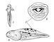 Головастик, личинка бесхвостых земноводных. Развивающийся из икринки, Г. ведёт водный образ жизни; имеет наружные жабры, двухкамерное сердце, длинный хвост, служащий для передвижения, орган прилипания, с помощью которого Г. прикрепляется к подводным предметам, органы боковой линии (см. Боковые органы); конечности отсутствуют. Питается главным образом растит. пищей. После 3—4 мес развития происходит метаморфоз Г.: сердце становится трёхкамерным, дыхание лёгочным, возникает второй (малый) круг кровообращения, жабры и жаберная полость редуцируются, хвост исчезает, сильно вырастают задние ноги, которые становятся основным органом движения. Роговой клювик отпадает, рот увеличивается, кишечник укорачивается. Изменяются органы чувств: развиваются полость среднего уха и барабанная перепонка, глаза приобретают подвижные веки. Органы боковой линии исчезают. По окончании этих изменений на сушу выходит лягушонок с вполне развитыми конечностями наземного позвоночного.