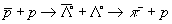 Антипротон , рожденный при распаде антилямбдагиперона , сталкивается с протоном p и аннигилирует в результате реакции: